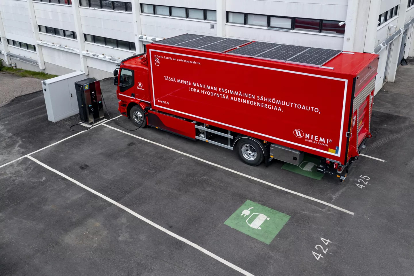 Niemi Palvelut lanseeraa maailman ensimmäisen täyssähköisen muuttoauton, jossa on katolle asennetut aurinkopaneelit. Volvo FE Electric -sähkökuorma- auto on konkreettinen askel Niemen autokannan sähköistämisessä ja tavoitteessa koko kaluston nollapäästöisyydessä vuoteen 2030 mennessä.