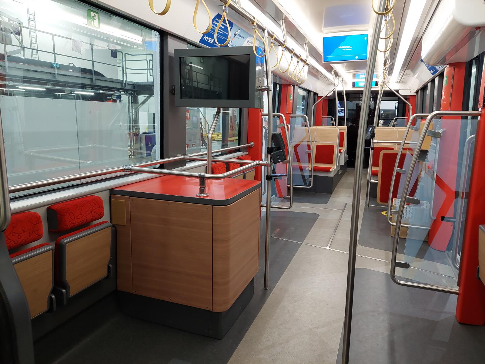 Lyyli-ratikan matkustamoon on viime päivien aikana asennettu laitekaappi ja siihen kuuluvat näytöt. Laitekaappi sisältää mittauksissa ja testeissä käytettävää tiedonhallintaan ja tietoliikenteeseen liittyviä laitteita. Näytöissä tullaan esittämään testeihin liittyvää sisältöä.