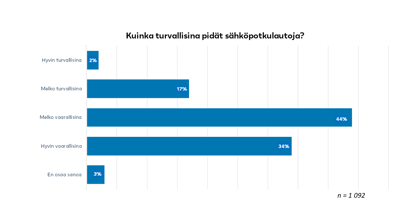LähiTapiolan teettämän kyselyn mukaan jopa neljä viidesosaa suomalaisista pitää sähköpotkulautoja melko tai hyvin vaarallisina. Valtaosa vastaajista ei ollut itse ajanut sähköpotkulaudalla. Alaviiri korostaa, että kyse on myös liikennekulttuurista.
