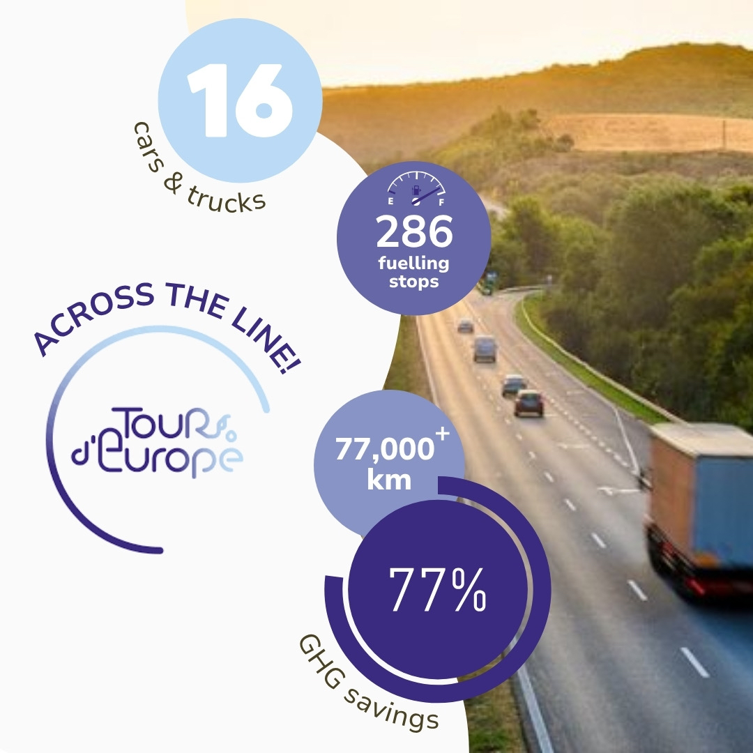 Ajoneuvot – 11 henkilöautoa ja 5 kuorma-autoa – ajoivat halki Euroopan yhteensä 77 500 kilometriä viittä eri reittiä pitkin. Niihin tankattiin 289 kertaa käyttäen monipuolisesti erilaisia uusiutuvia polttoaineita: HVO:ta ja B100:aa dieselajoneuvoihin, E85:tä ja uusiutuvaa bensiiniä bensiini- ja hybridimoottoreihin, BioLNG:tä kaasukäyttöisiin kuorma-autoihin sekä erilaisia polttoaineseoksia silloin, kun 100-prosenttisen uusiutuvan polttoaineen vaatimuksia ei ollut saatavilla.